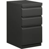 Mobile pedestal with HON Brigade Series 800 lateral-pull design fits under standard HON Initiate, 38000 Series and 29-1/2" worksurfaces. Freestanding pedestal offers a 19-7/8" depth and two file drawers with ball-bearing suspension (90 percent extension). High-sided file drawers feature two crossrails and accommodate front-to-back filing for letter-size, hanging file folders. Counterweight inhibits tipping when opening more than one drawer. Charcoal gray pedestal is also equipped with a HON One Key interchangeable, core-removable lock; fixed front casters; and swivel rear casters. Pedestal meets or exceeds ANSI/BIFMA and ISTA performance standards.