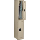 Six-tier box locker is made of heavy-gauge steel and offers tamperproof hinges. Each compartment measures 12" wide x 18" deep x 12" high. Vertical louvers provide ventilation. Locker includes number plates for locker identification. Each door has a padlock hasp. Locker does not include padlock. Multiple rows of lockers can be ganged with standard nuts and bolts, which are not included.